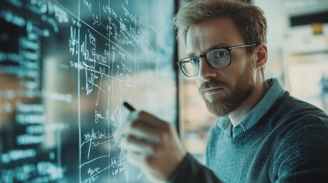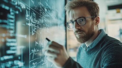 Educator explaining mathematical formulas on a digital board. Generative AI