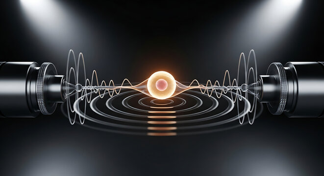 Exploring quantum wave interactions science lab digital visualization high-tech environment close-up view ai studio concept