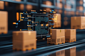 Futuristic logistics data interface in modern warehouse