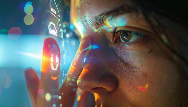 Woman Envisioning Future with Advanced Augmented Reality Glasses