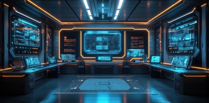 Futuristic Control Room With Advanced Technology Displays