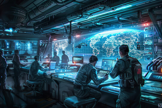 Futuristic Command Center with World Map