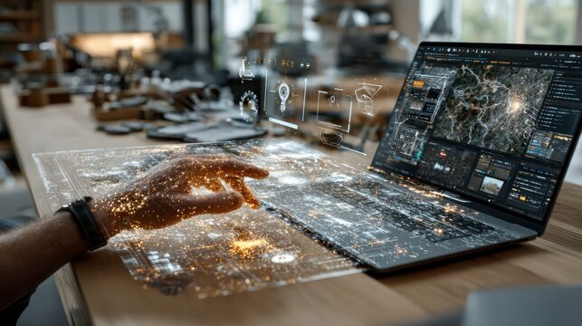 Future Tech Workspace Interactive Design and Data Visualization on a Modern Desk