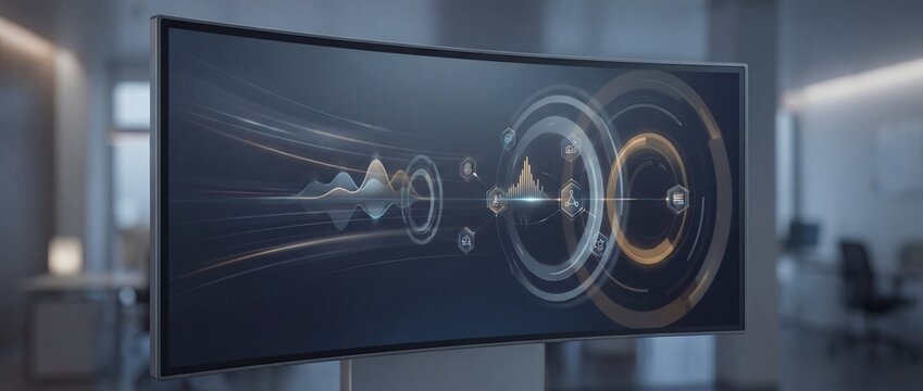 Innovative tech visualization modern office digital display indoor close-up data analysis