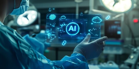 Surgeon Utilizing Advanced AI Interface in Modern Operating Room