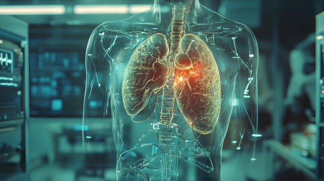 Futuristic Bio-Engineered Heart with Digital Infographic Elements in Hi-Tech Laboratory Setting