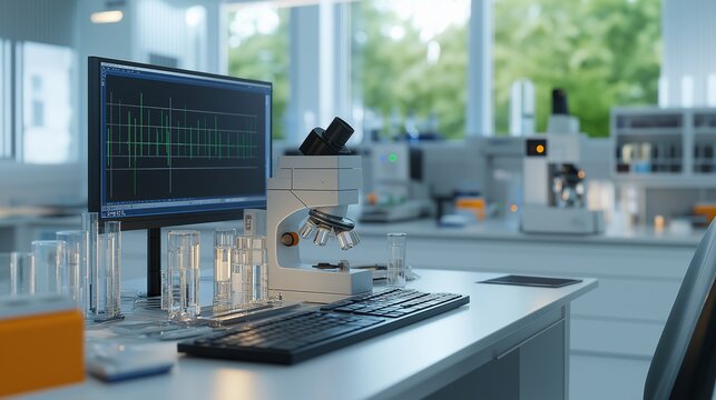Innovative technology usage futuristic lab digital interface high-tech environment close-up view data analysis concept