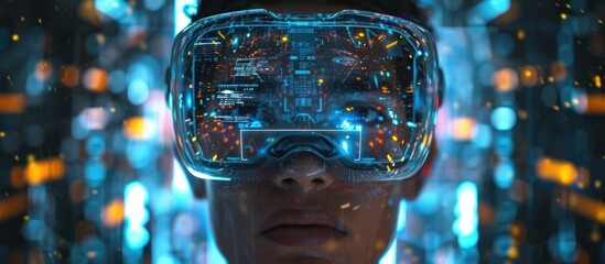Futuristic young professional experiencing virtual reality technology
