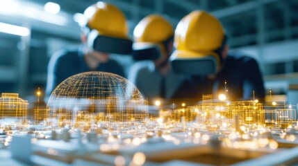 Team collaborating on innovative project in modern workspace
