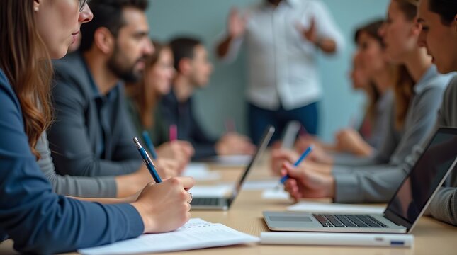 Business Team Meeting: Diverse Professionals Collaborating in Modern Office Workspace