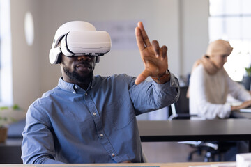 Innovative technology interaction virtual workspace digital interface modern office close-up view user engagement