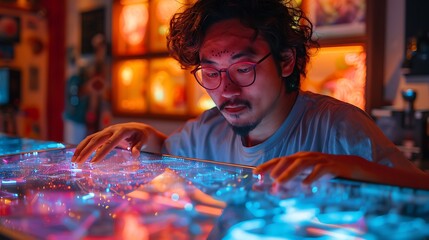 An innovative DIY workshop with interactive digital DIY guides and bioluminescent DIY tools, promoting hands-on creativity