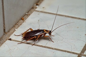 A cockroach (Blattodea) with outstretched antennae on a cracked urban surface, AI generated, AI generated