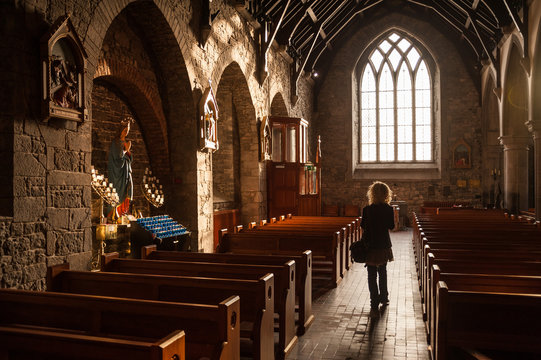 Garca, Sao Paulo, Brazil, November 19, 2019. Woman prays inside a chapel in the rural area of Garça