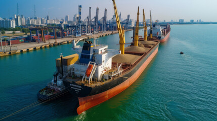 A cargo ship is inspected by port officials to ensure compliance with international regulations for safe and environmentally responsible grain transportation.