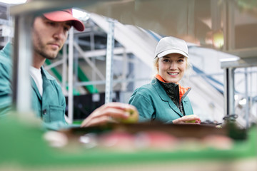 Female worker in protective uniform inspects machinery. Stainless steel tanks fill industrial space. Employee holds clipboard, checks equipment. Plant operations maintained