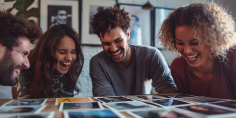 Pile of retro instant photo prints with colorful frames