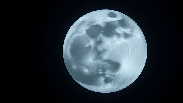 phase. A detailed closeup of the full moon, showcasing its textured surface against the dark expanse of space. STEM education sheets.