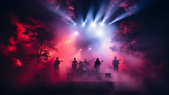 Live band performing with fog and spotlights atmosphere
