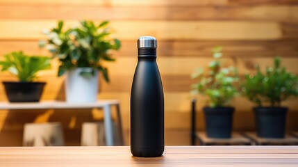 Coral water bottle outdoor poolside setting wellness concept