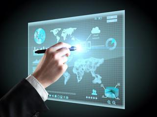 An engineer using advanced glasses examines complex data on a digital interface, showcasing the synergy of engineering expertise and cutting-edge technology in the digital realm.