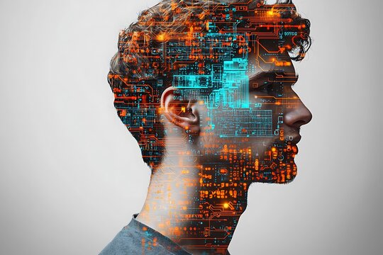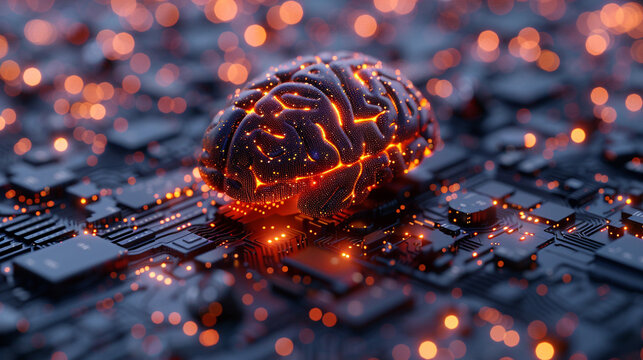 Conceptual image of a human brain integrated with digital circuits, symbolizing artificial intelligence