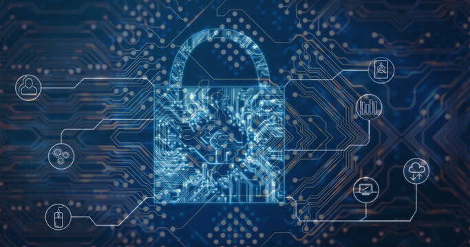 Social media chat icons integrated with digital circuit board