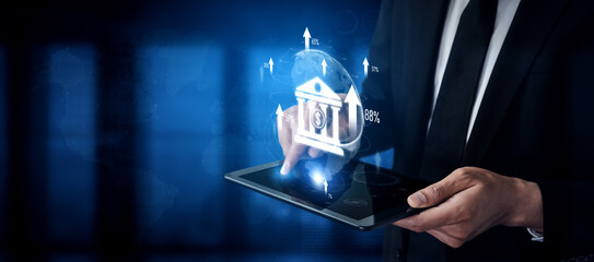 Businessman analyzing financial data and digital interface