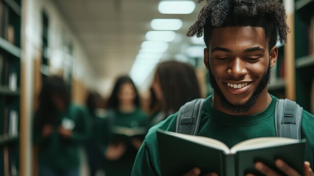 Man holding books in a library