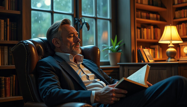 Man Reading in a Luxurious Library