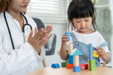 Pediatricians are checking the children development according to the appropriate age, doctors encourage the child to do activities, IQ, EQ, age appropriate learning activities and promotion, expect