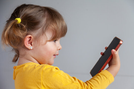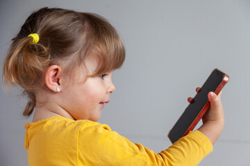 Young child communicating through a smartphone, emphasizing tech education and safety