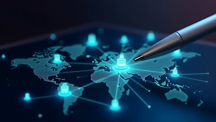 Global data network visualization with world map interface