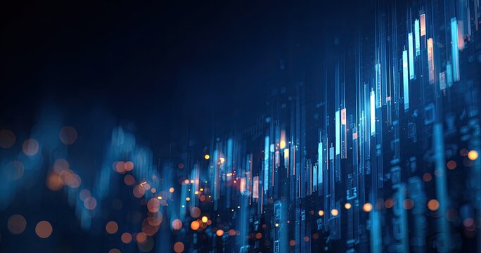 Abstract financial charts illuminated city lights