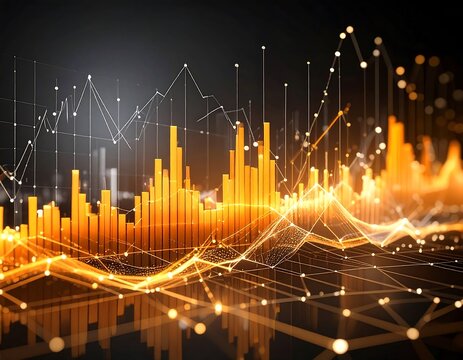 Colorful digital data visualization displaying vibrant bar graphs and intricate graph lines on a tech-inspired background