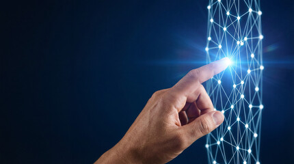Hand interacting with touchscreen display, showcasing modern technology and user interface design, creating engaging