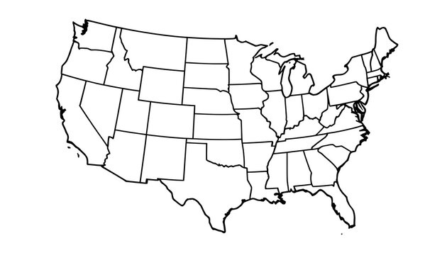 Outline of the United States Map with State Boundaries for Educational Purposes and Planning