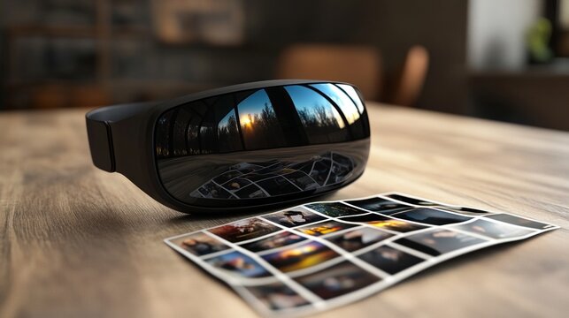 A sleek tablet computer rests on a wooden table