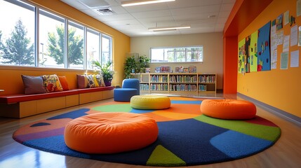 Bright inviting learning space featuring eco-friendly materials interactive zones educational tools collaboration