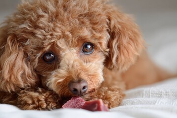 Poodle Pet Dog Enjoying Beef Chewables for Heartworm Care and Health Protection