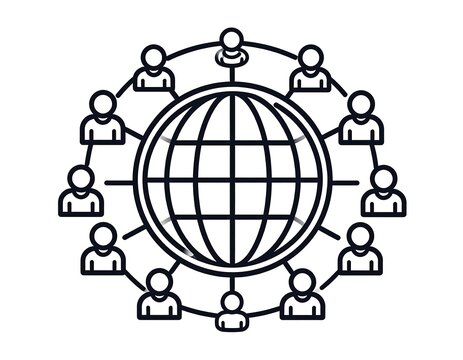 Global network of interconnected individuals represented by a globe encircled by figures