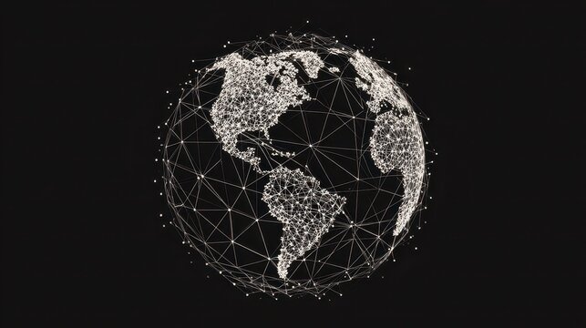 A digital representation of Earth, rendered as interconnected points and lines against a dark background, illustrating global connectivity