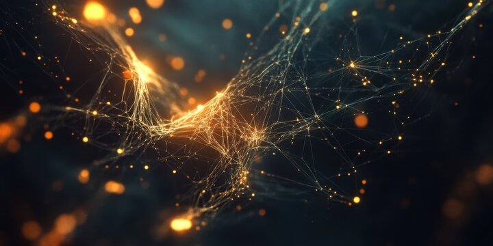 Abstract geometric network with glowing blurred lights, creating a futuristic and dynamic visual effect.