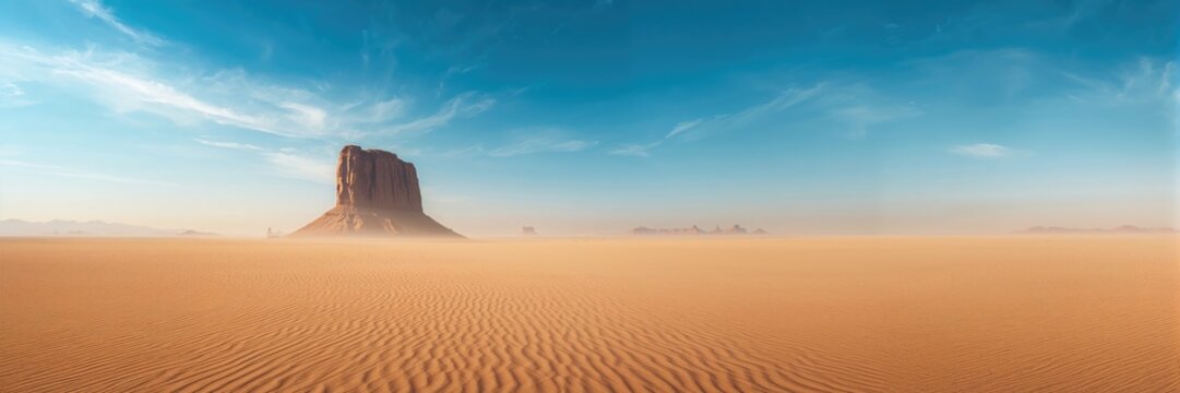Sparse desert scene featuring a prominent rock formation, suitable for editorial header or interface backdrop