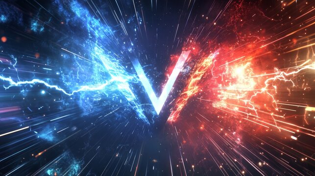 Dynamic versus logo on holographic background featuring lightning for esports tournament displays