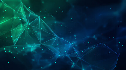 An abstract digital background showcasing interconnected lines and glowing particles in vibrant blue and green hues.