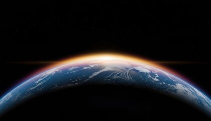 Sunrise over earth from orbit with networked satellites and city lights connecting globe