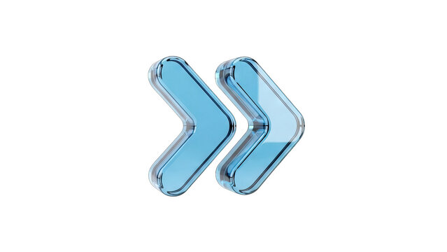 Elegant forward navigation arrows, blue glass design for web interfaces