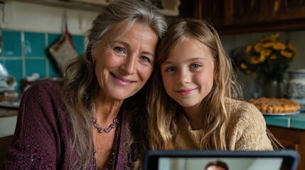 Grandmother and Granddaughter Connecting Through Video Call with Loved Ones