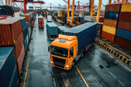 Industrial worker overseeing operations at cargo terminal Generative AI image